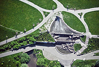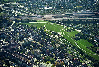 Albanlage, Park und Brunnen über der Autobahn