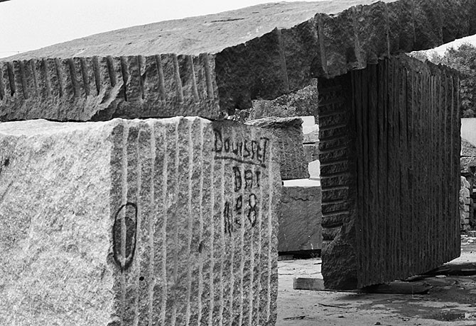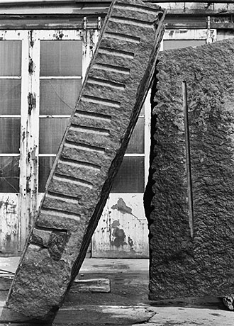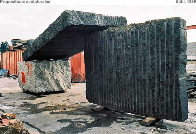 An einem Samstag wurde unter der Krahnbahn des Natursteinwerkes Schütz in Bühl, Baden mit den Granitplatten experimentiert und fotografiert. Danach wurden die Platten für den ursprünglichen Zweck verarbeitet.
