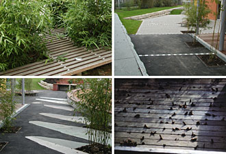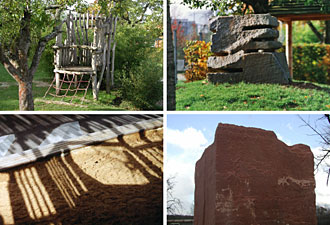 Die Bewohner: 8 Gruppen, 140 Kindern (1 bis 12 Jahre) 28 Betreuer. Der Ort: Eine Streuobstwiese am Stadtrand, neben der Konzernverwaltung, umgeben von Gärten und Ackerland. Das Gebäude, geplant von Dipl.Ing. R, Seesle, DaimlerChrysler umschließt den Spielgarten L-förmig mit 2 Obergeschossen. Eine differenzierte zentrale Halle verbindet Haus und Garten. Der Garten wurde direkt im Modell M 1:20 entworfen. Vielfältige Naturmaterialien, Farben und Formen bestimmen das Gesamtbild. Kleinteilige Gartenzimmer und Labyrinthe aus geschnittenen Hecken bilden zusammen mit, Weidenhäuschen, Kletterbäumen, Baumhaus und Steinskulpturen eine vielgestaltige Folge von Räumen und Bildern. Die kindliche Wahrnehmung nimmt diese Vielfalt unbewusst im Wechsel der Jahreszeiten auf. Sie baut daraus eine eigene sich entfaltende Welt. Die Pflanzung ergänzt die bestehende Streuobstwiese durch Obstbäume und einem Nutzgarten mit Feuerstelle. Bambushaine in 5 unterschiedlichen Arten erzeugen immergrüne Räume und Sichtschutz auch im Winter. Die Fluchttreppe des Gebäudes wurde so in die große Sandfläche des Gartens integriert, dass eine Rutsche, ein langer Spielsteg mit Geräten, Unterstände und Querverbindungen entstehen und Barriere freie Spiel und Fluchtmöglichkeit bieten. 5.500 qm, 135.- €/qm |